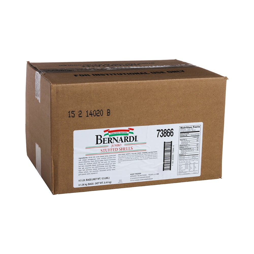 Bernardi Jumbo Cheese-Stuffed Shell Pasta, Cooked, Frozen, 3 Ounce, 3 Lb Bag, 4/Case
