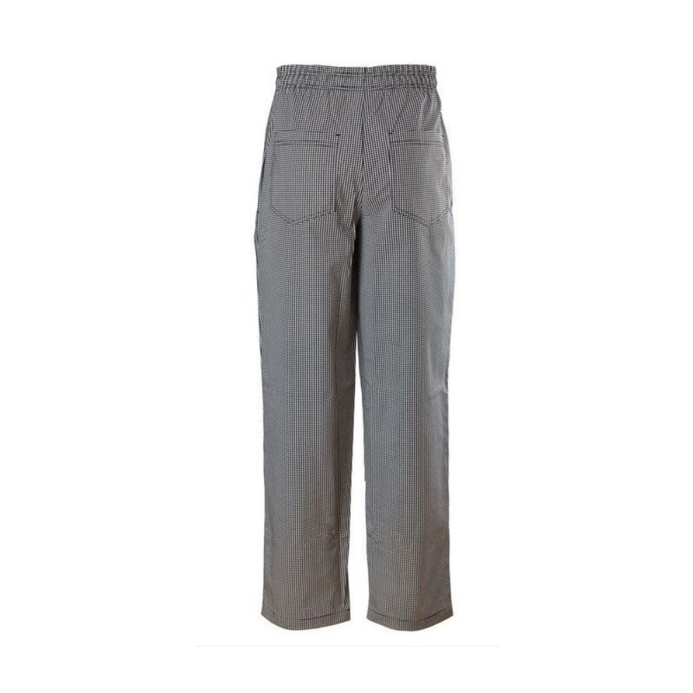 These relaxed-fit chef pants have an elastic waistband with a drawstring closure, and a front zipper for comfort. They feature an attractive houndstooth print. Two side pockets and two rear pockets offer lots of storage.