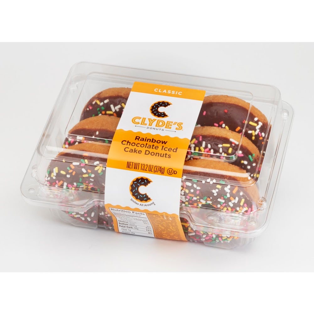 Clyde's Donuts Iced Chocolate Donuts, with Sprinkles, 2.2 Oz Each, 6/Package