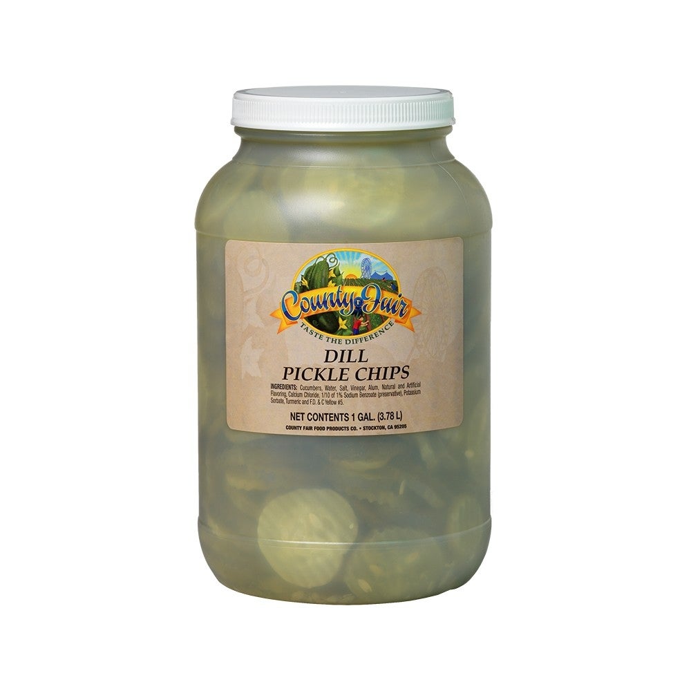 County Fair Crinkle-Cut Dill Pickle Chips, 3/16 Inch, 400-500 Count, Refrigerated, 1 Gal, 4/Case