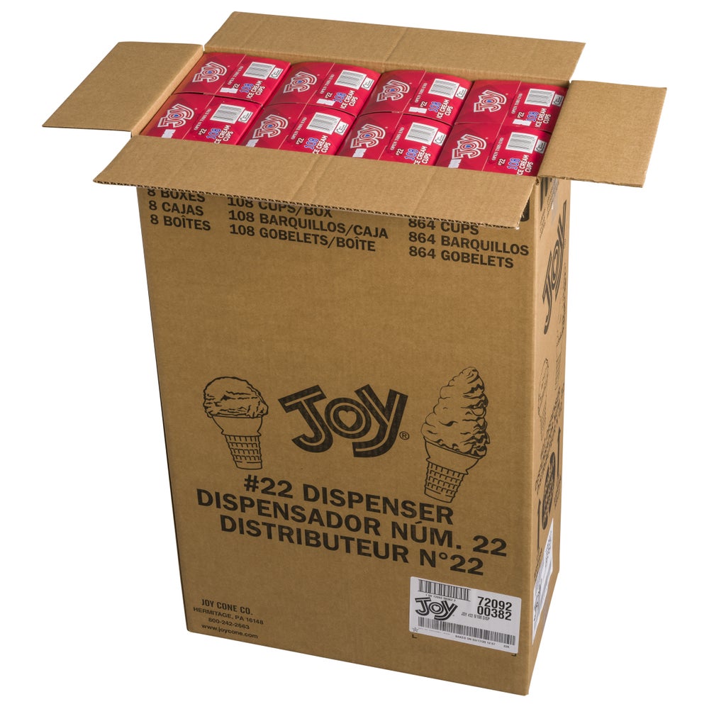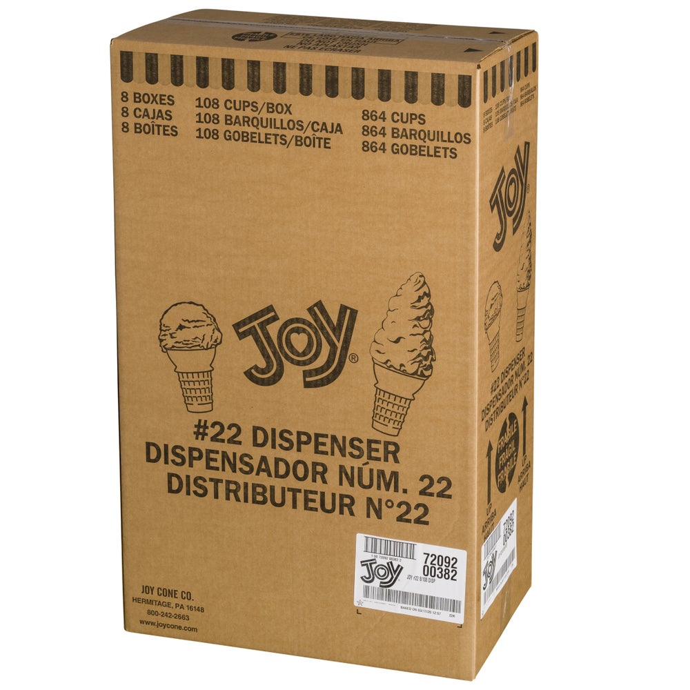 Joy Cake Cup Ice Cream Cones, #22, Dispenser, 108 Ct Carton, 8/Case