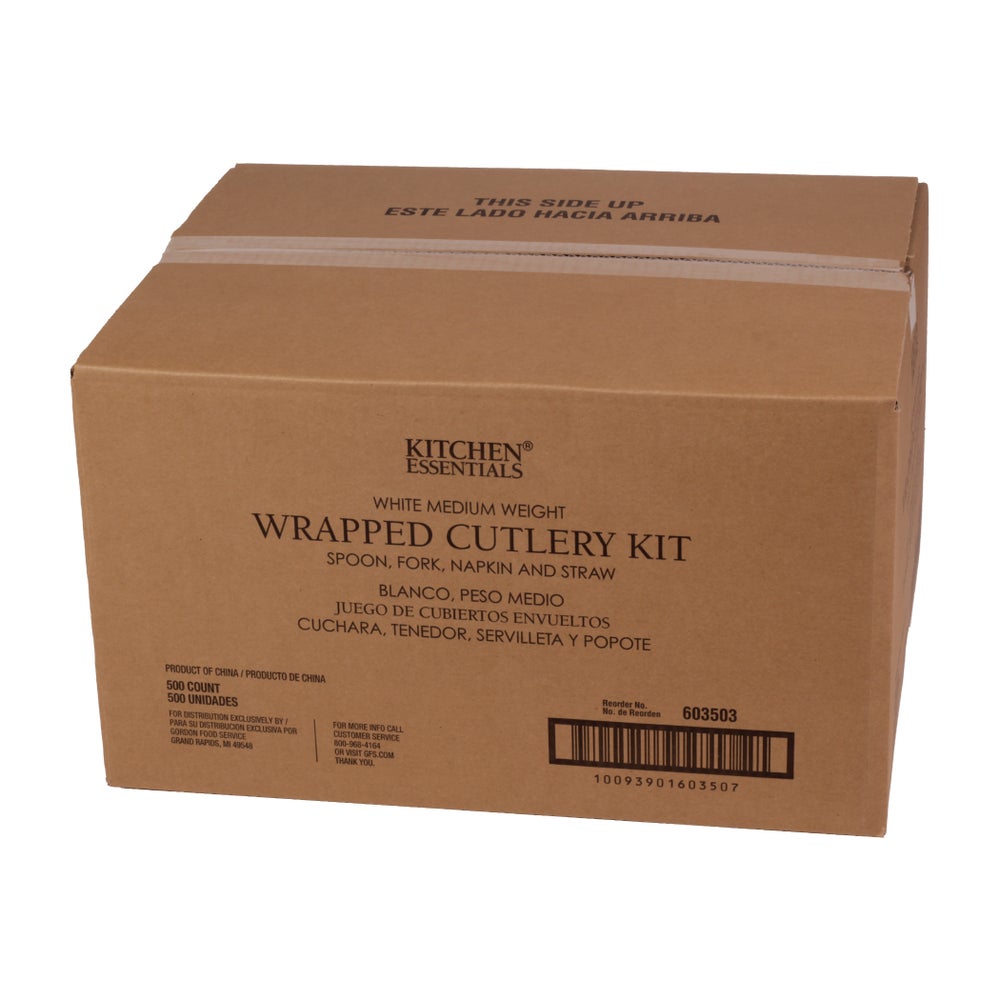 - Enjoy all-in-one convenience with these wrapped cutlery kits. They contain a reliable, medium-weight fork and spoon, plus a napkin, and milk straw.