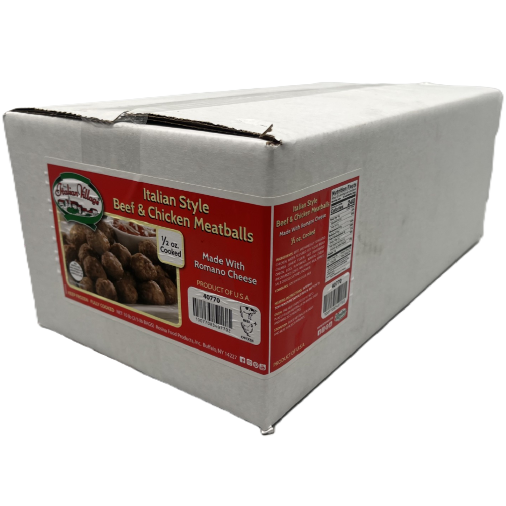 Italian Village Italian-Style Beef & Chicken Meatballs, 0.5 Ounce, Frozen, 5 Lb Bag, 2/Case