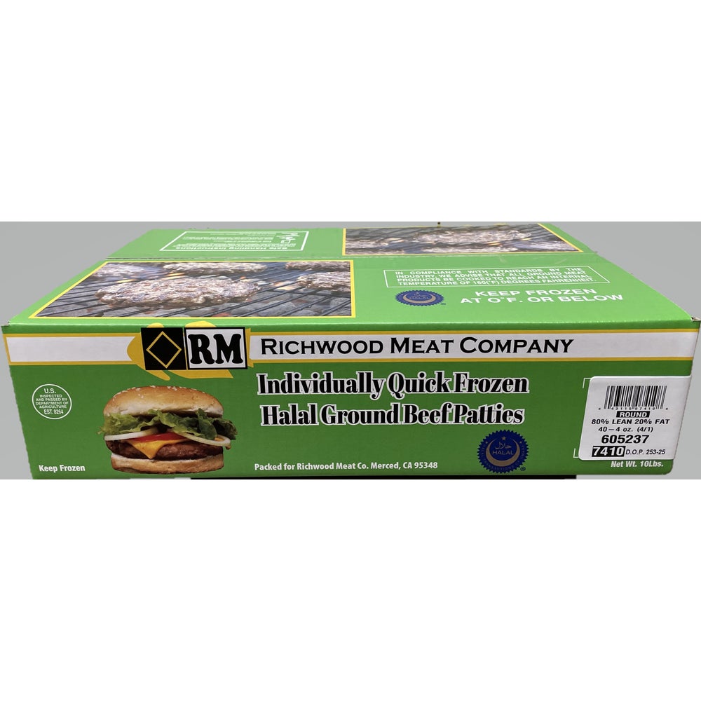 Richwood Meat Company Ground Beef Patties, 4 Ounce, Frozen, 10 Lb Package, 1/Case
