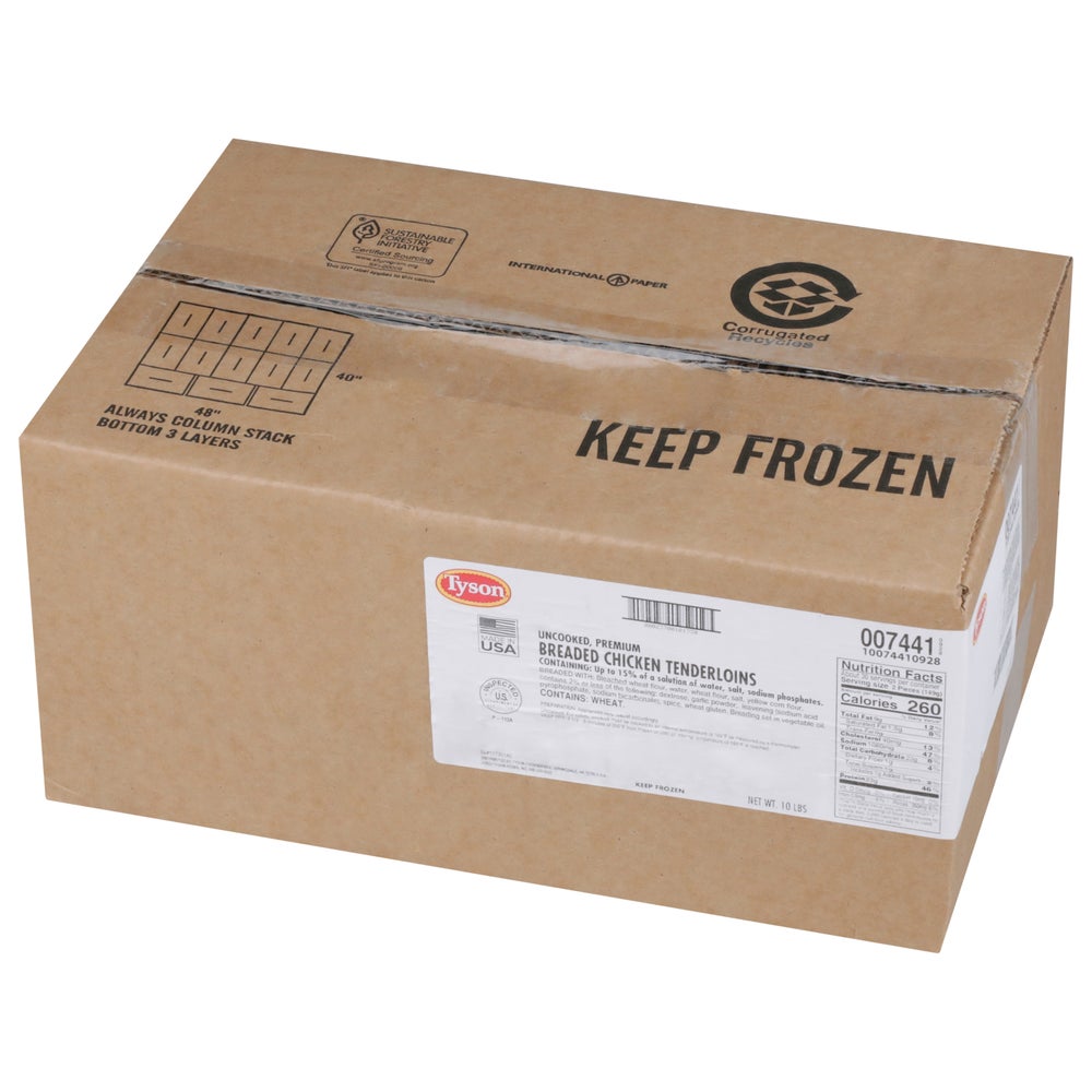 Serve up a true crowd pleaser with the classic, finger-licking flavor of Tyson Uncooked Premium Chicken Tenders. Our chicken is made with premium, whole-muscle cuts, resulting in a high-quality protein that's perfect for a variety of appetizers and center-of-plate items. We marinate the chicken to provide uniform flavor and moisture, then the tenders receive a flavorful coating of seasoned wheat flour. Simply fry and serve with your favorite dipping sauce as part of a chicken tender basket. Stored frozen at 0F, our chicken has a shelf life of 365 days. Includes one case of Uncooked Premium Chicken Tenders. Tyson chicken offers consistency and quality in unique forms and on-trend flavors. We offer a diverse selection of crowd favorites to help grow your bottom line. With Tyson, customers will experience more of the delicious, crispy and saucy flavors they love.