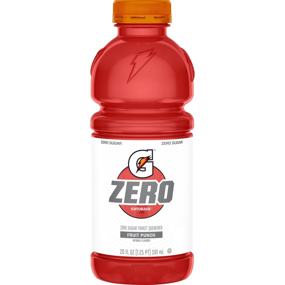 Gatorade Zero Zero Calorie Zero Sugar Fruit Punch Sports Drink, 20 Fl Oz Bottle, 24/Case