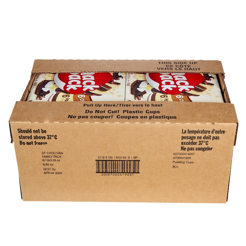 Snack Pack Ready to Serve Chocolate Vanilla Pudding Cups, 3.25 Ounce, 12 Ct Box, 6/Case