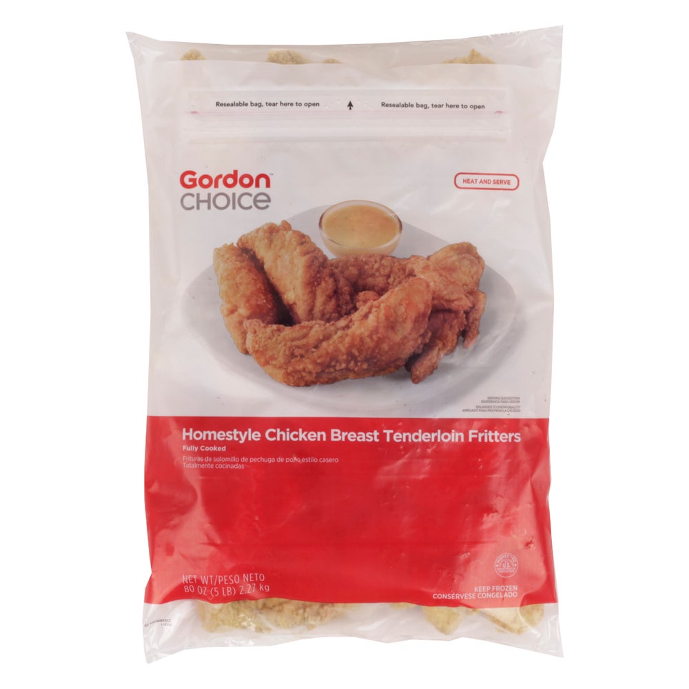 Chicken Tenderloins, Original, Fritter Breaded, Marinated, Cooked, Frozen, 5 Lb Bag