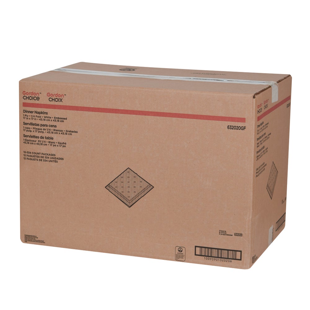 Gordon Choice 1-Ply Embossed Dinner Napkins, White, 1/4 Fold, 17 x 17 Inch, 334 Ct Package, 12/Case
