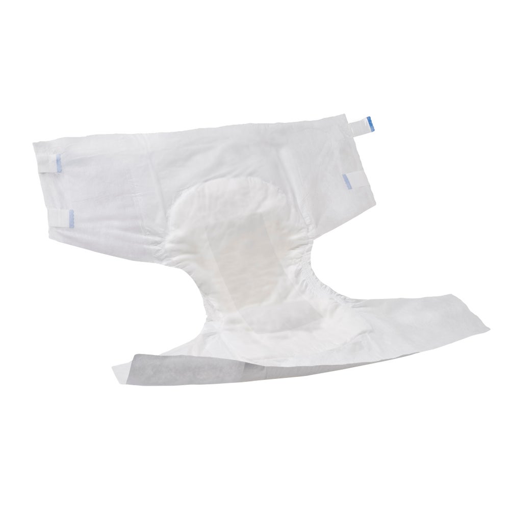 A cloth-like outer covering and soft inner liner provides optimal comfort and promotes healthier skin, providing these briefs with a discreet look and feel. With a triple-tier moisture locking system and breathable side panels, these briefs feature a wetness indicator that turns blue when urine touches the green, waterproof backsheet. These Medium briefs fit patients with a waist size between 32-44 inches.