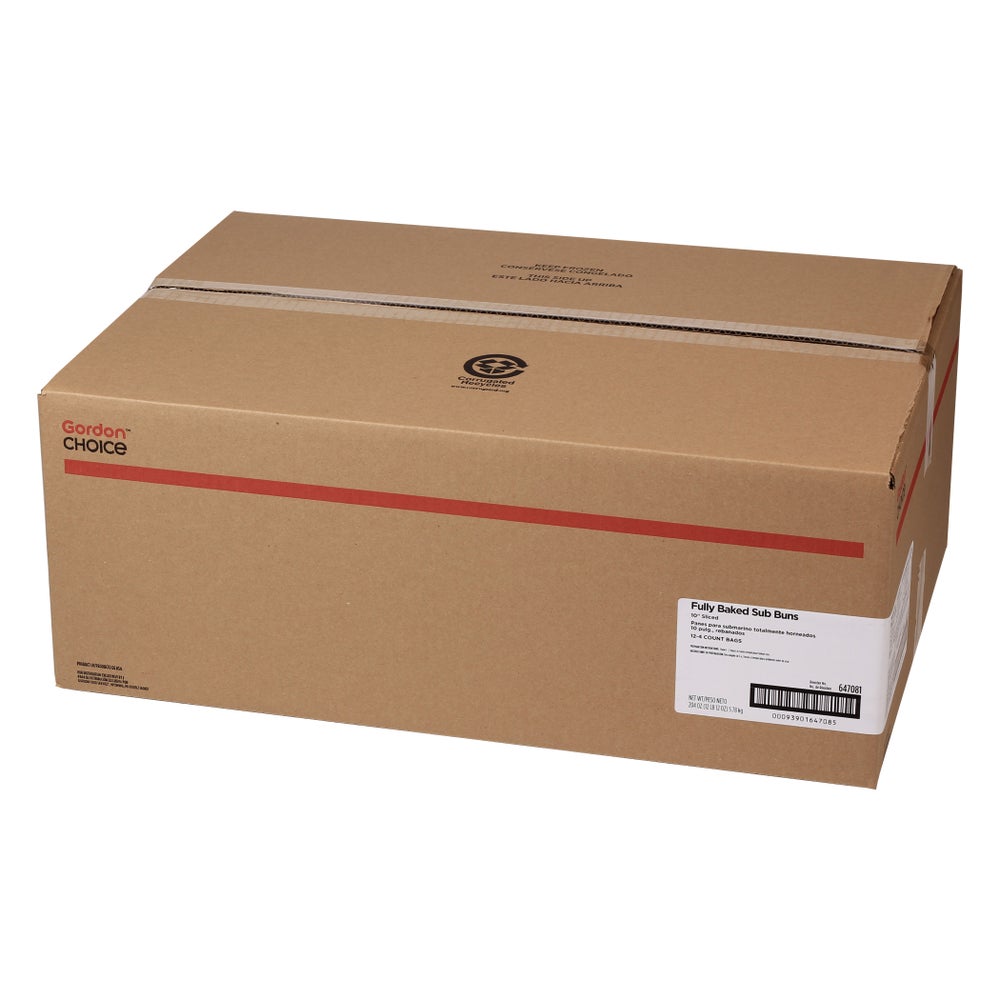 Gordon Choice 10 Inch White Sub Buns, Sliced, Frozen, 4 Ct Package, 12/Case