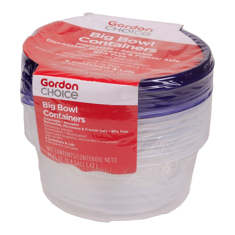 Gordon Choice 48 Ounce Plastic Big Bowl Food Containers, Clear, with Lids, 6 Ct Package, 6/Case