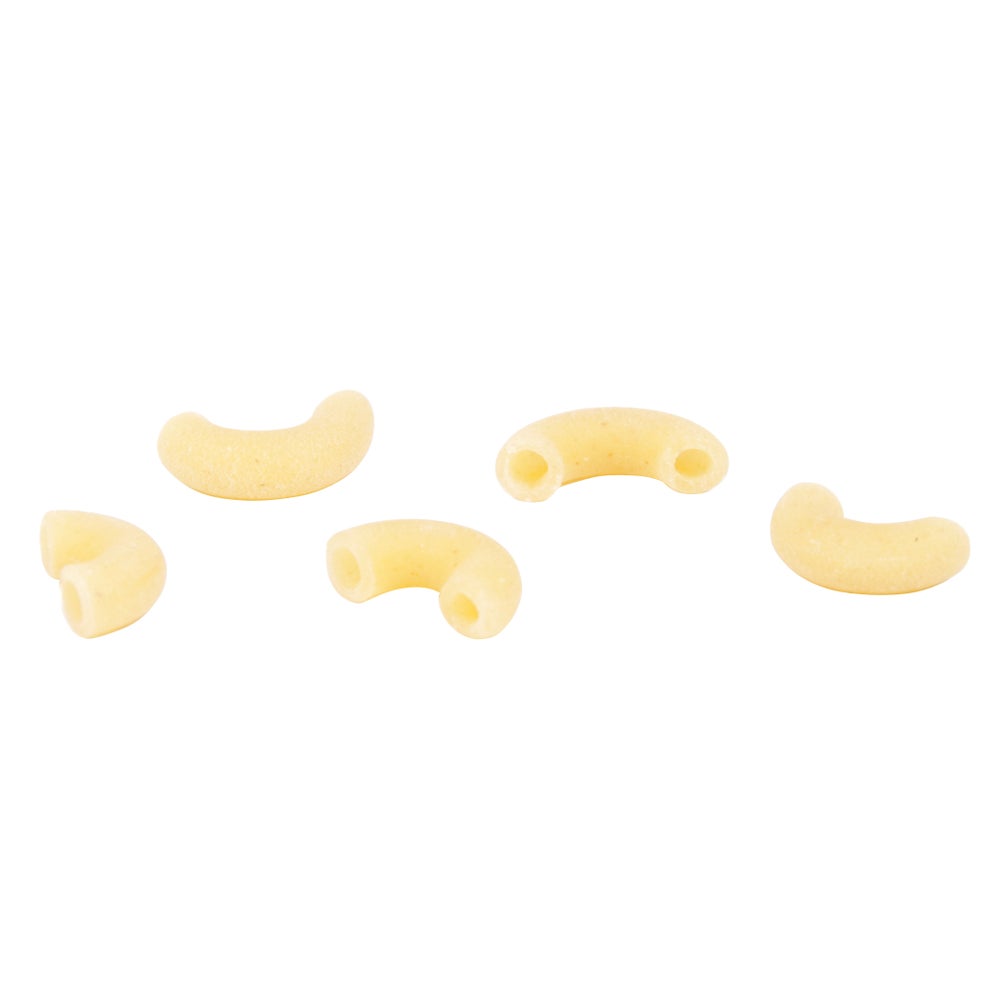 - This tubular-shaped elbow macaroni is made from a blend of durum semolina and durum flour for reliable quality. It is amber in color and has a nut-like flavor.