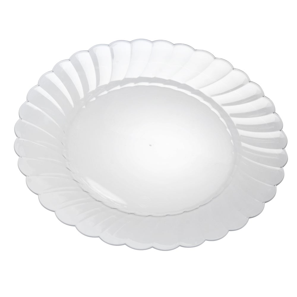 This Fineline brand 6-Inch plastic plates is clear with scalloped edges. The design blends well with most any decor or theme.