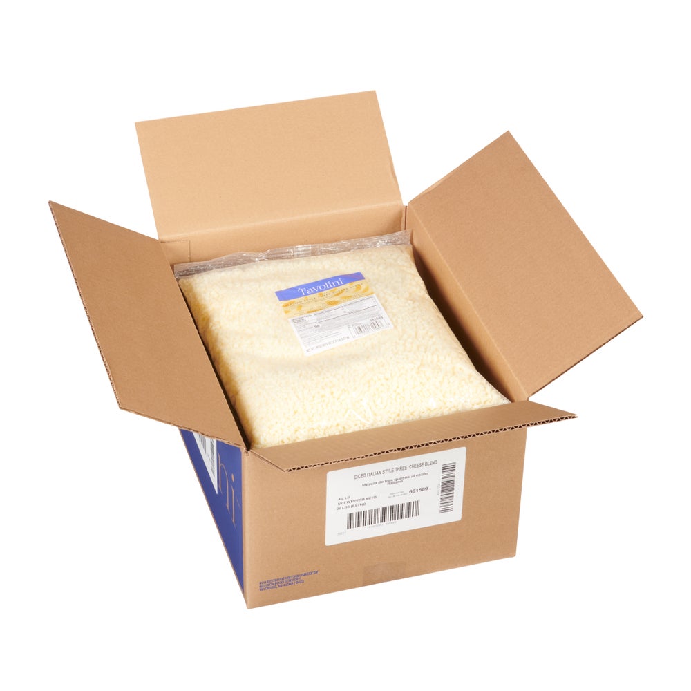 Tavolini Italian Cheese Blend, Mozzarella/Provolone/White Cheddar, Diced, 5 Lb Bag, 4/Case
