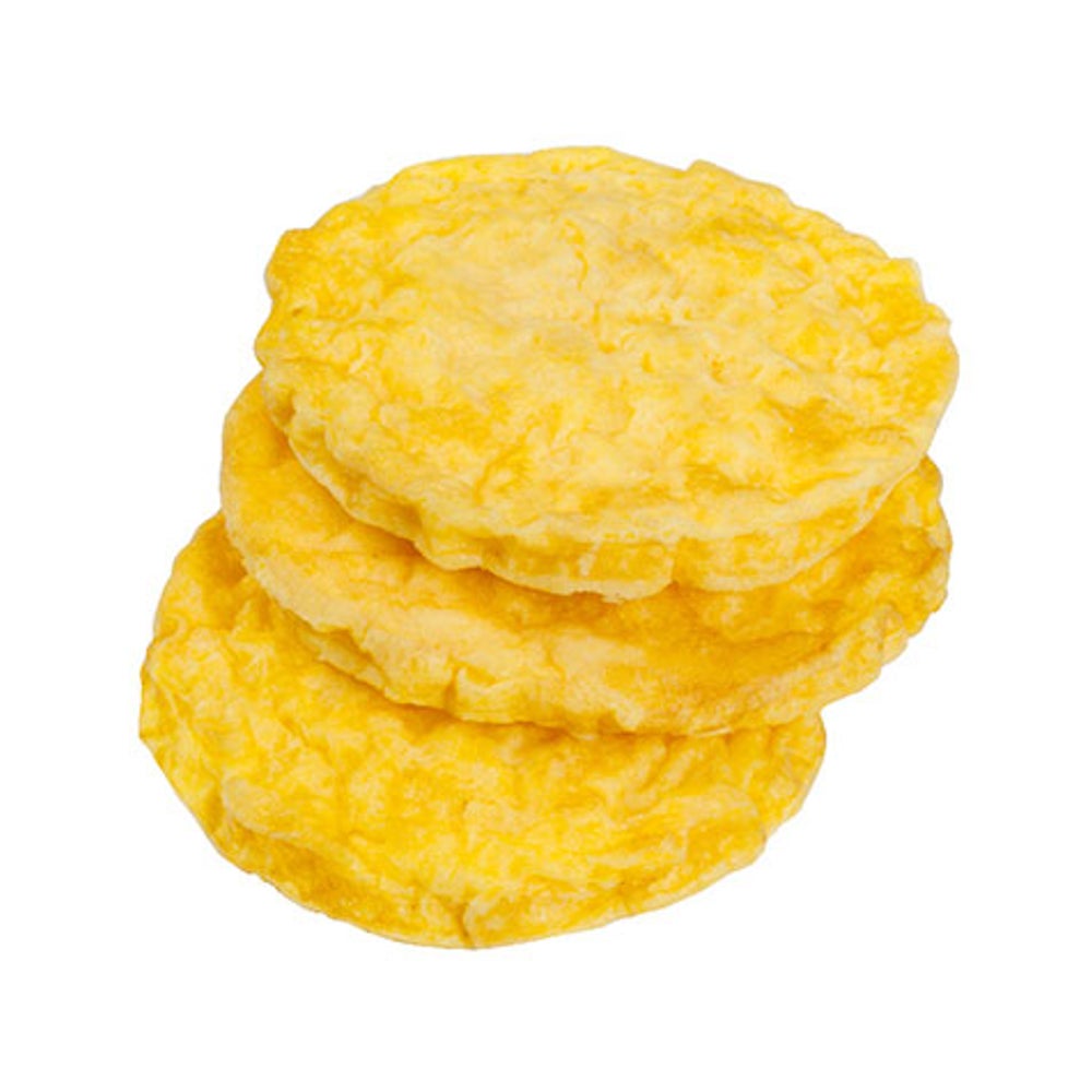 These pre-cooked egg patties are light and fluffy, and are useful in a variety of applications.