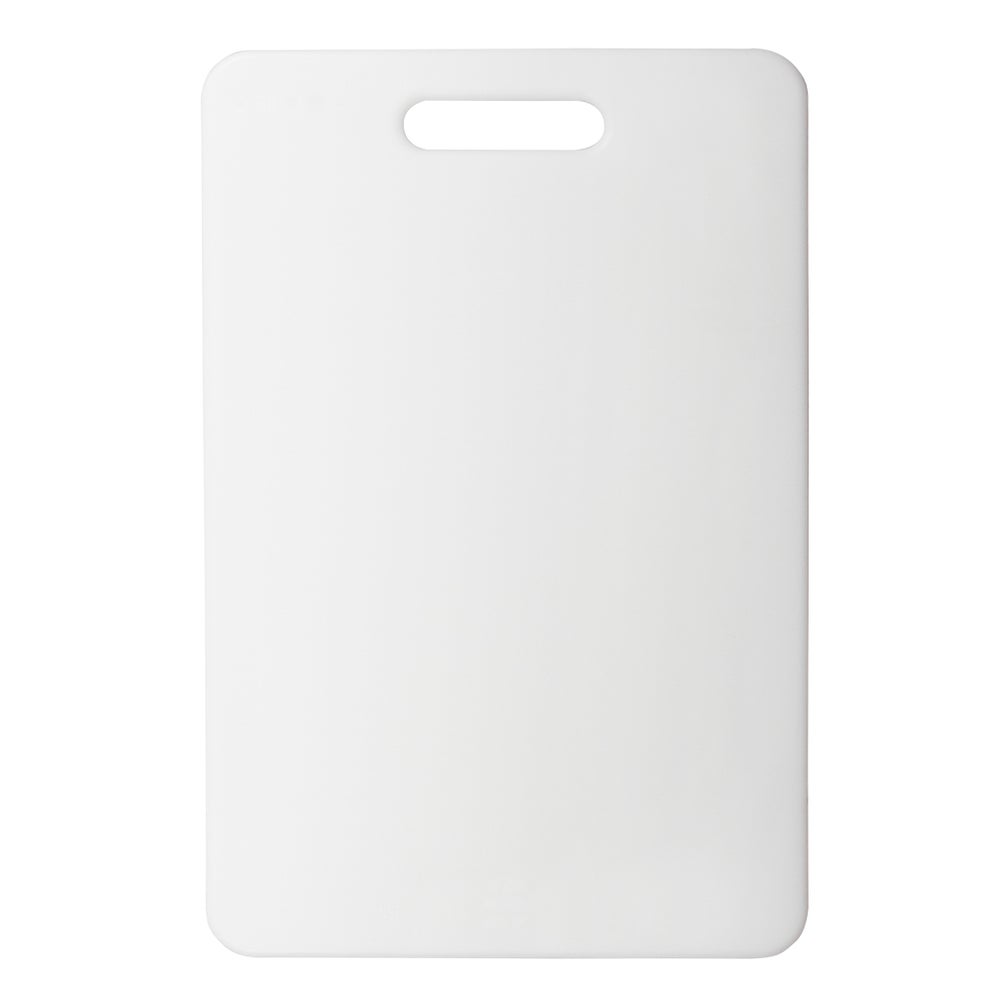 This white cutting board with a cut-out handle is ideal for back of house prep needs.