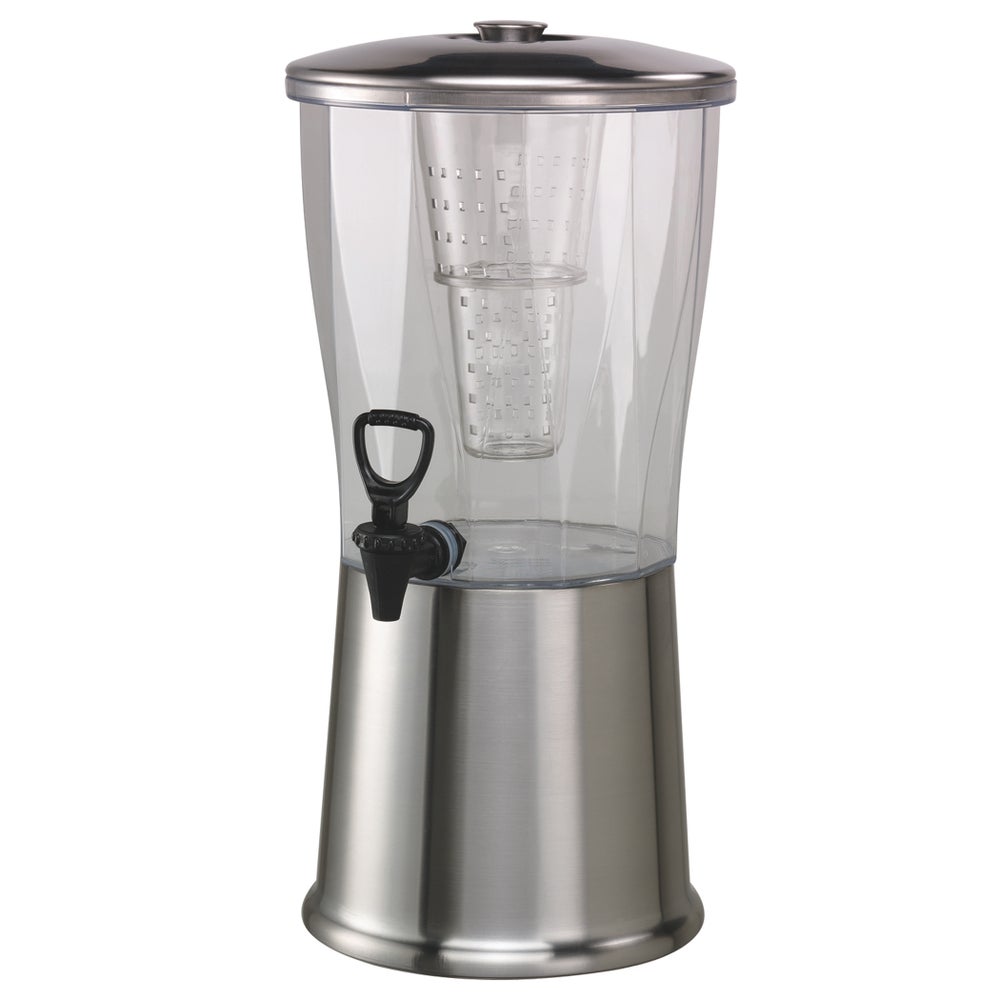 This 3-gallon beverage dispenser has a stainless steel base and lid and is ideal for serving cold beverages. The base and lid store inside the container for easy storage. Each dispenser has a BPA-free clear contaner and comes with a flavor infuser.