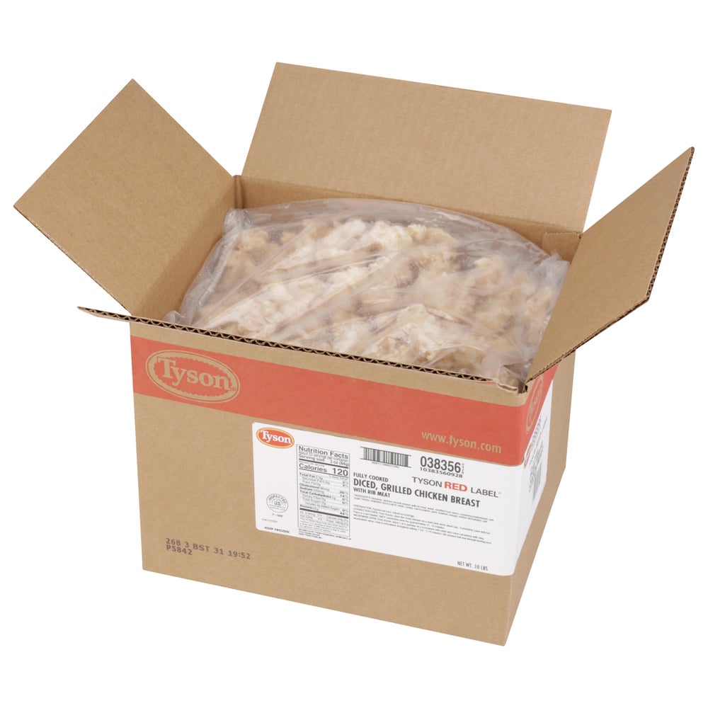 Chicken Breasts, Grilled, Diced, Cooked, Frozen, 5 Lb Bag, 2 Per Case