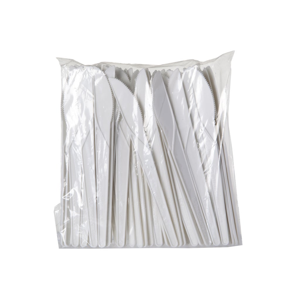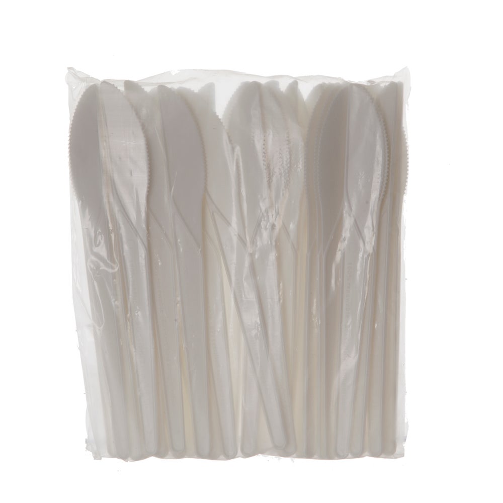 Knives, Heavyweight Plastic, Natural White, with Full-Length Handles, PLA, 50 Ct Package, 20 Per Case