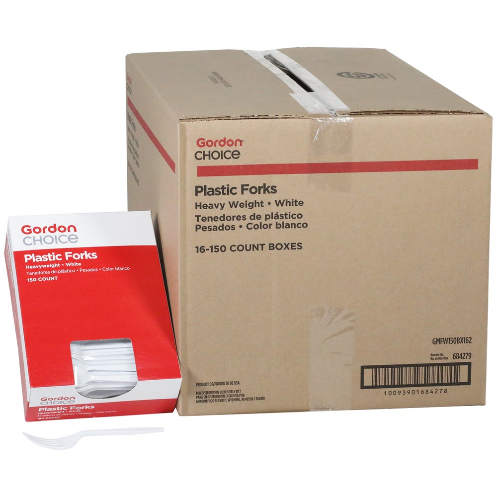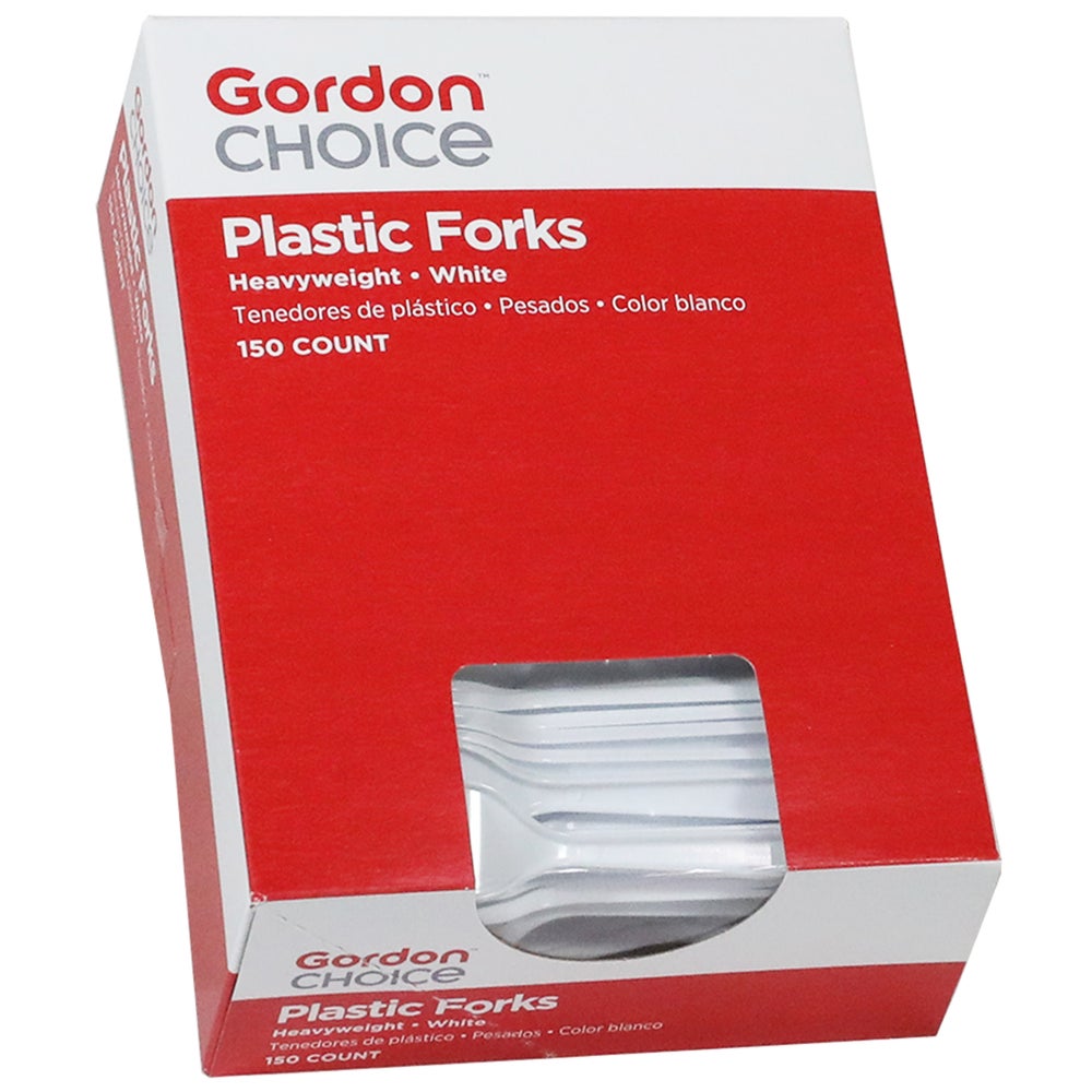 Gordon Choice Heavyweight Plastic Forks, White, with Medium-Length Handles, Polystyrene, 150 Ct Box, 16/Case