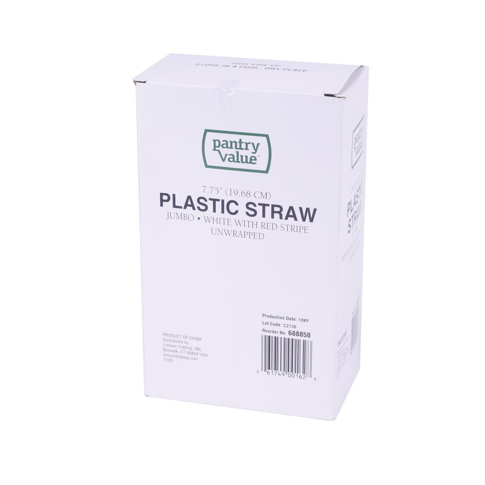 Pantry Value 7.75 Inch Plastic Jumbo Straws, White & Red, Polypropylene, 250 Ct Package, 50/Case
