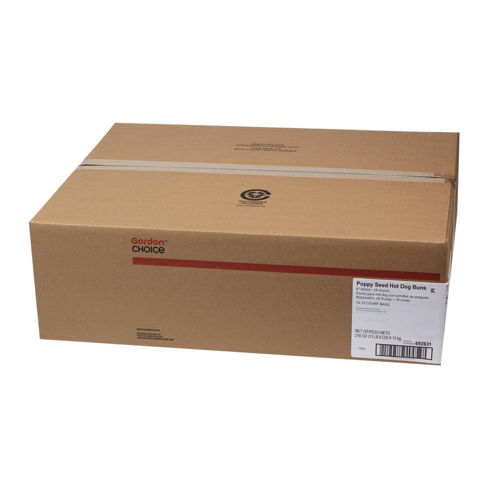 Buns, Hot Dog, 6 Inch, Poppy Seed, Sliced, Frozen, 12 Ct Package, 12 Per Case