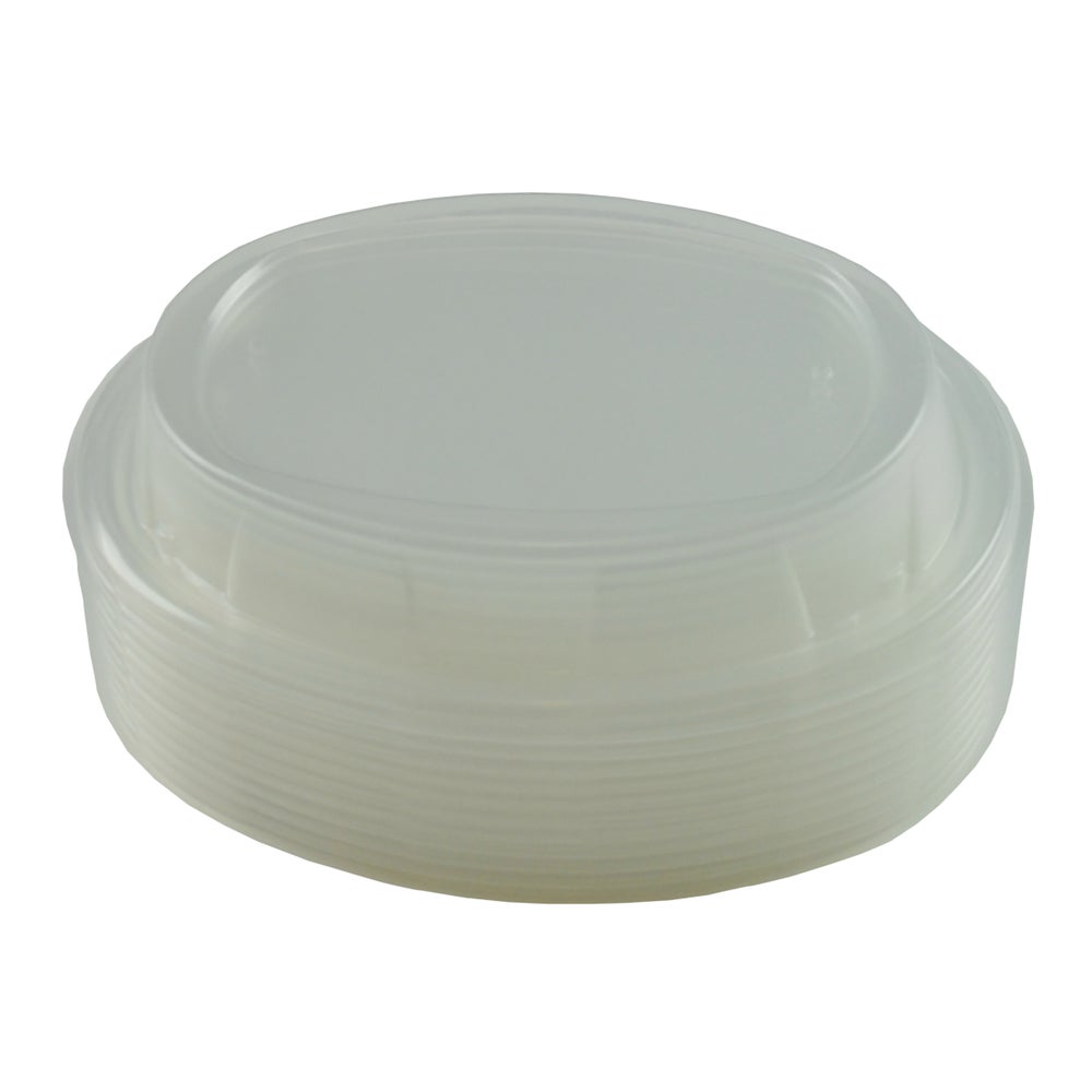 This clear, oval, 9 x 7 inch dome lid fits the 9 x 7 inch molded fiber container. It meets the latest menu trends in sustainable tablesettings while keeping a clean and contemporary look.