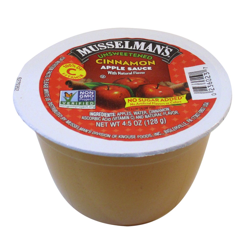 This Musselman's branded, unsweetened applesauce is made from 100% American grown apples. Packaged for the perfect snack in schools, healthcare, or to-go style kids' meals.