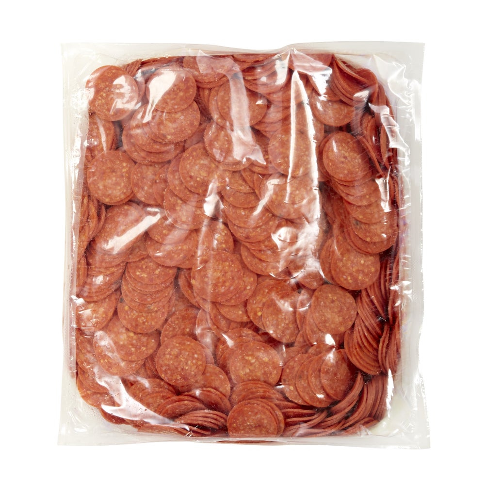 This sliced pepperoni has a natural casing which makes it cup and char on the outside, offering a low grease addition to pizzas, sandwiches, salads, and more.