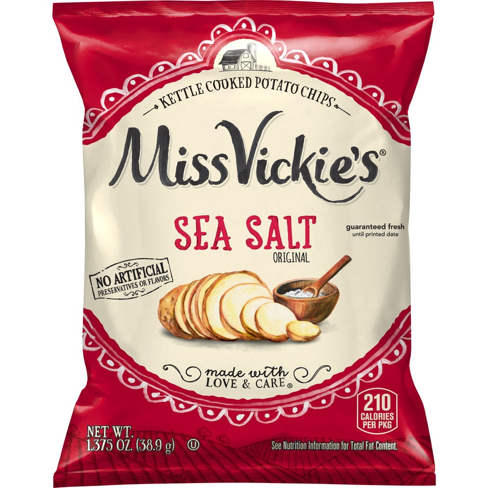 Miss Vickie's Kettle Sea Salt Potato Chips, Large Single-Serve, 1.38 Oz Bag, 64/Case