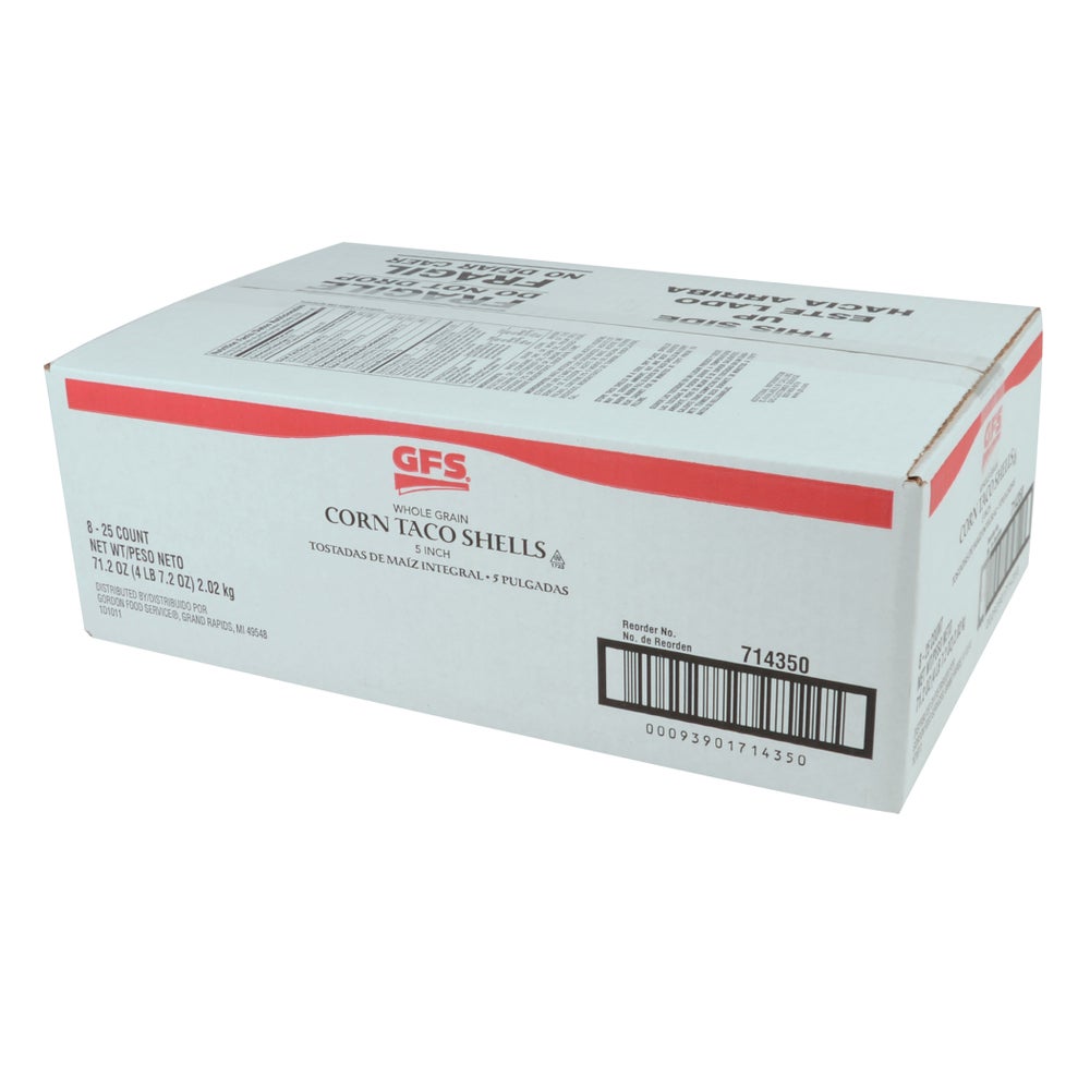 Gordon Choice 5 Inch Whole Grain Corn Taco Shells, Shelf-Stable, 25 Ct Package, 8/Case