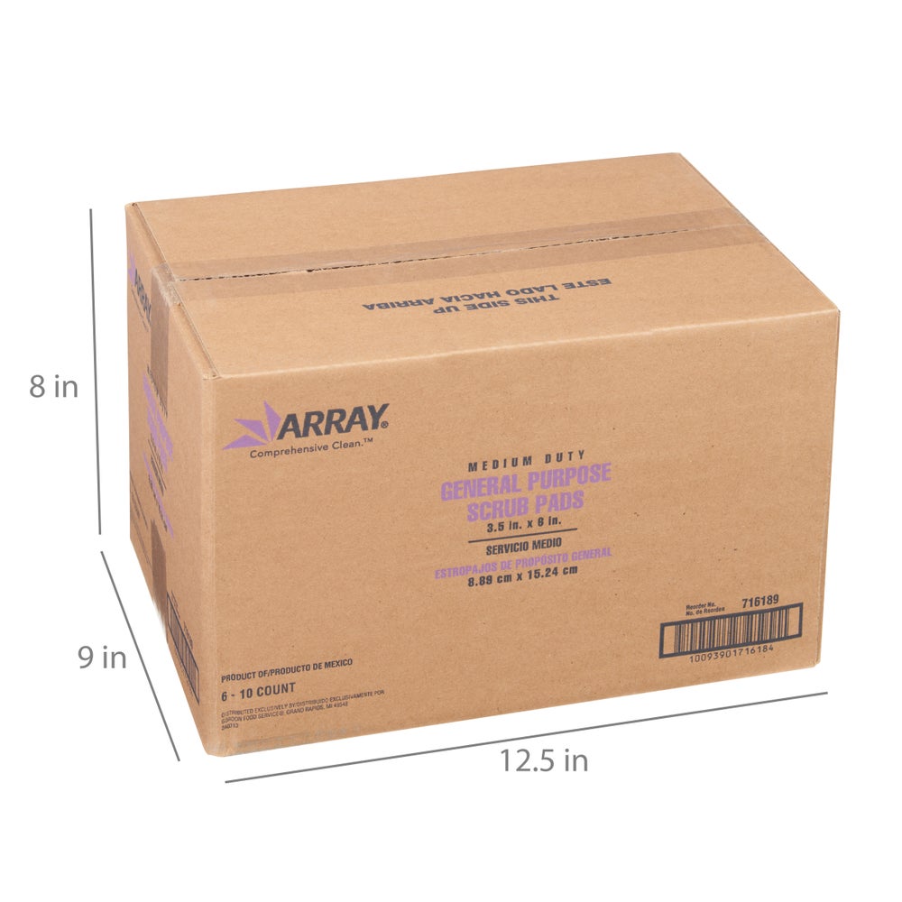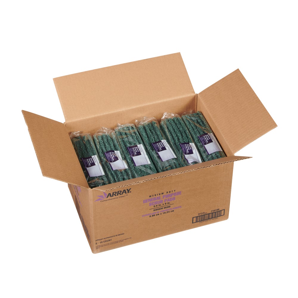 Array General-Purpose Scrub Pads, Green, 3.5 x 6 Inch, 10 Ct Package, 6/Case