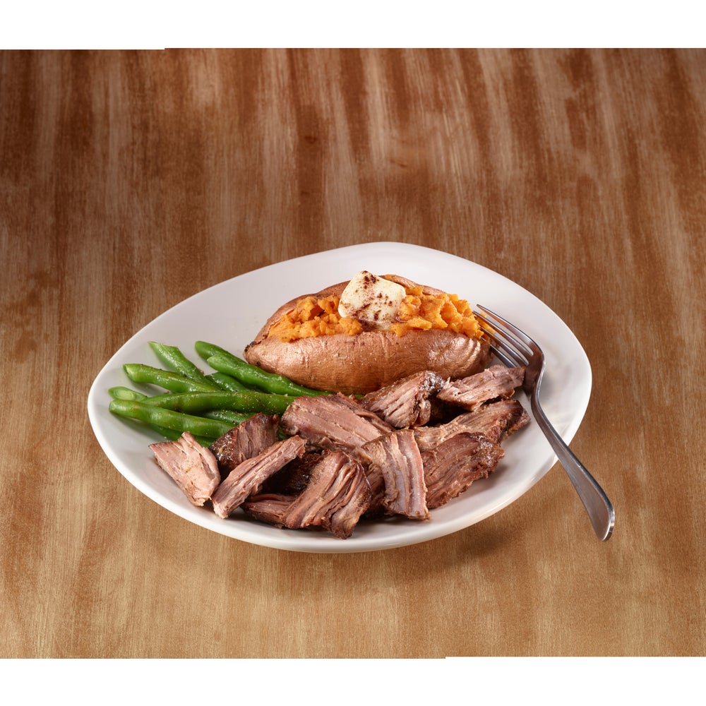 - Tender, juicy and roasted to well done, these pot roasts have a rich, beefy, homestyle flavor. Carve, slice or shred them for a multitude of entrees.