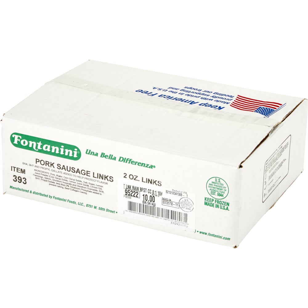 Fontanini Pork Breakfast Sausage, Links, Casing, 2 Ounce, Raw, Frozen, 160 Oz Package, 1/Case