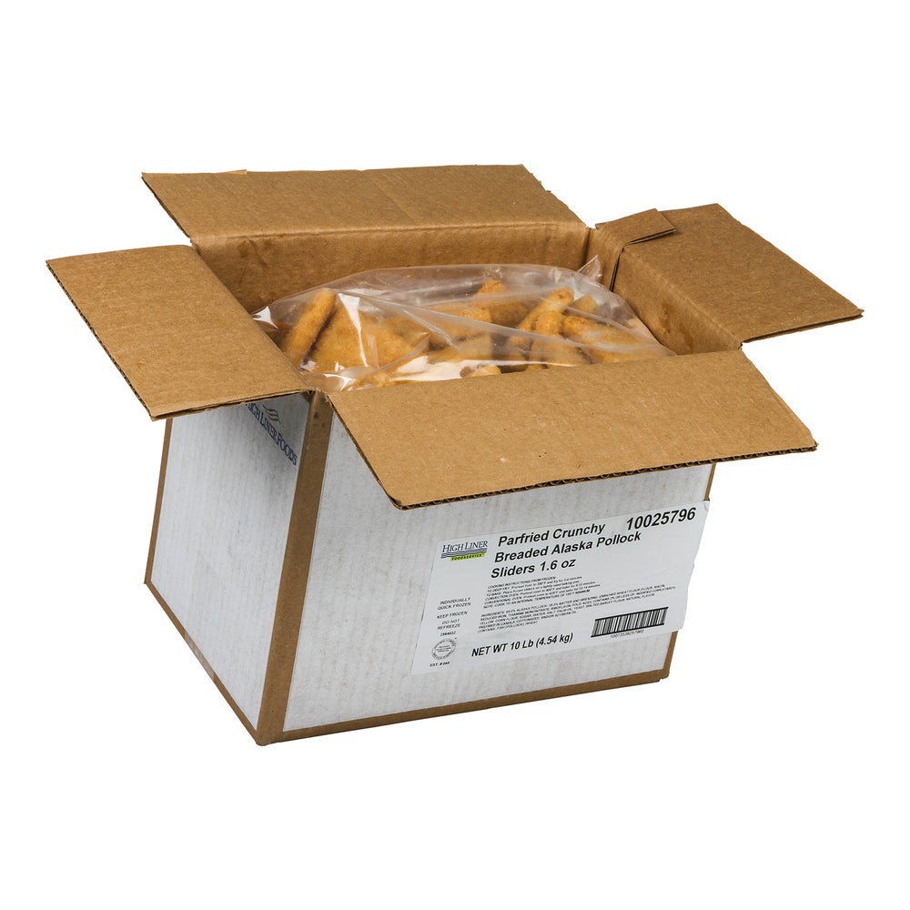 Pollock Sliders, Alaskan, Panko Breaded, Wild-Caught, Oven-Ready, 1.6 Ounce, Raw, IQF, 10 Lb Package
