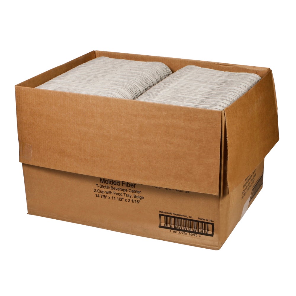 Strongholder 2-Cup Molded Fiber Beverage Carriers, Beige, for 8-44 Ounce Cups, with Tray, 100/Case
