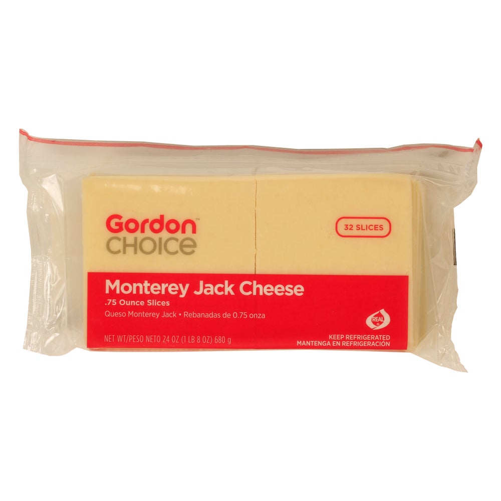 Gordon Choice Monterey Jack Cheese, Sliced, 32 Count, with Interleaf Paper, 0.75 Ounce, 1.5 Lb Package, 6/Case