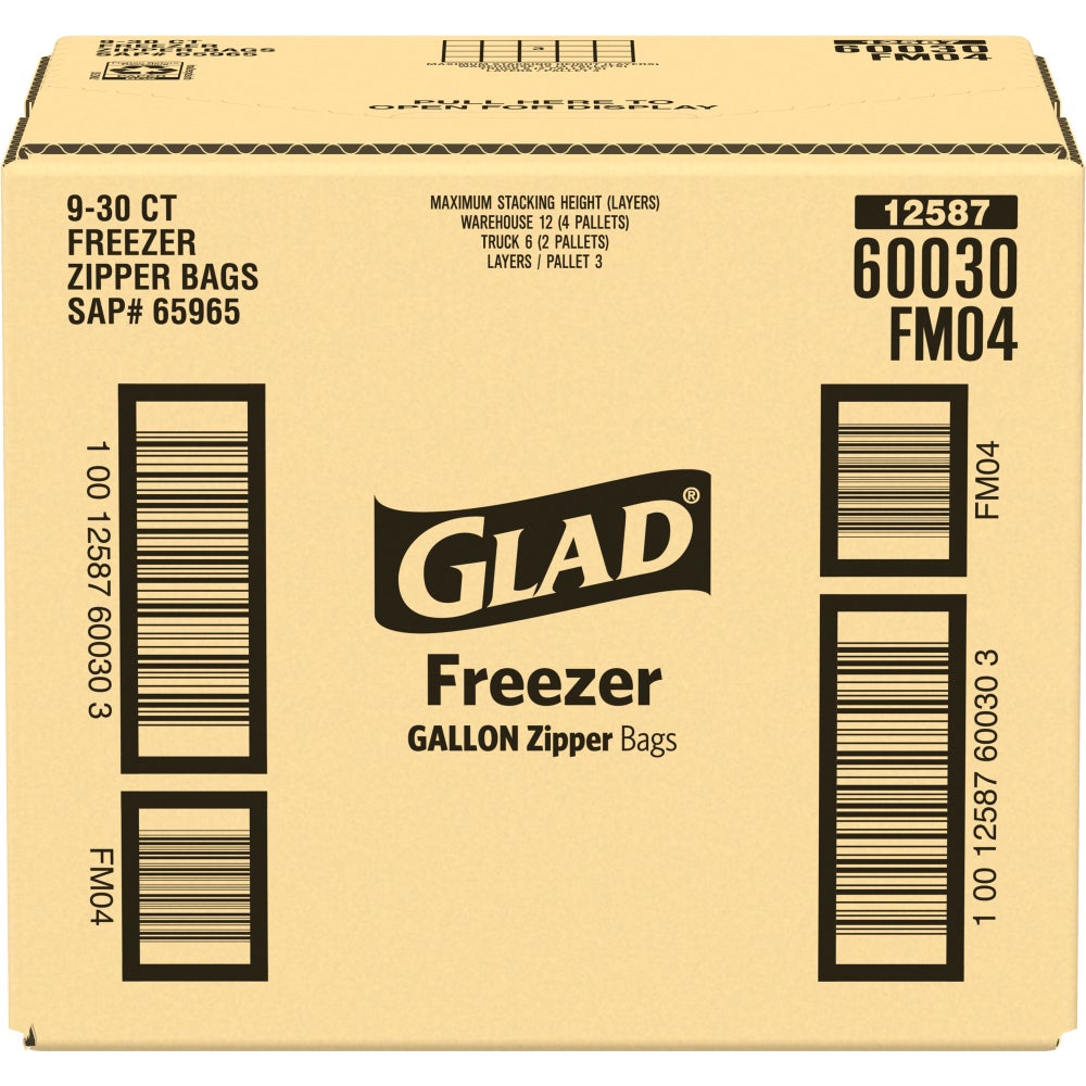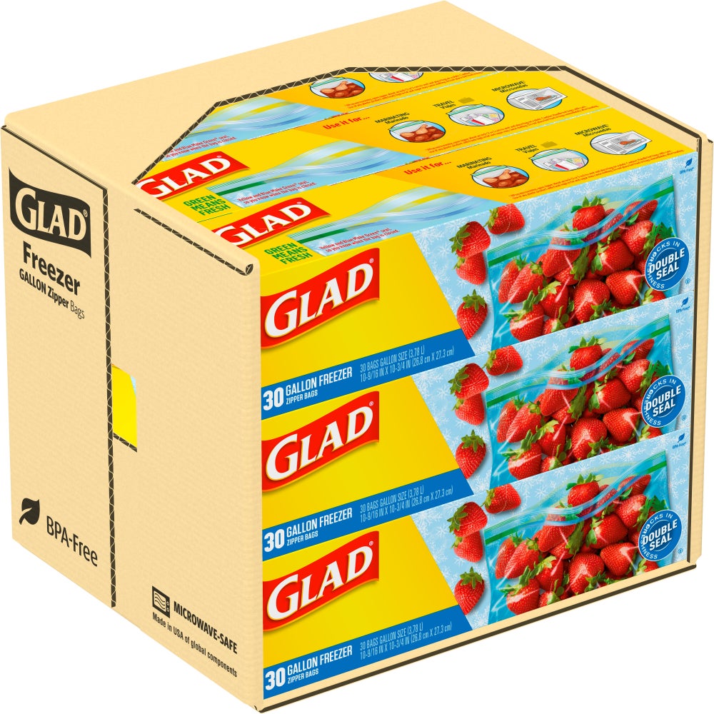 Glad Zipper Freezer Gallon Storage Bags, 30 Ct Box, 9/Case