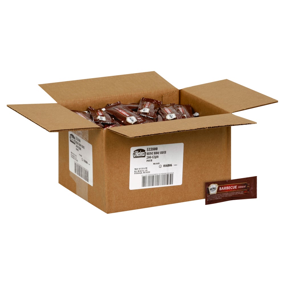Heinz BBQ Sauce is made from sweet tomato sauce with a unique blend of spices and natural smoke flavor. Heinz 12 gm. single serve packets (200 per case) offer a convenient, on-the-go option ideal for commercial kitchens, restaurants, concessions and front-of-house condiment stations.