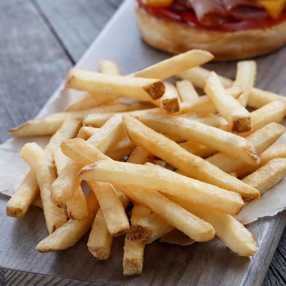 These skin-on french fries are lightly coated with potato starch for enhanced potato flavor.
