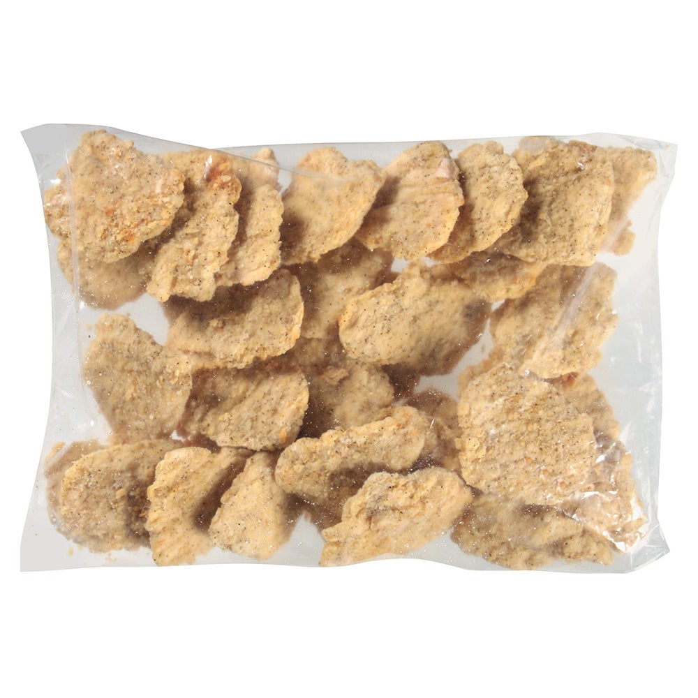 Moist and tender, these chicken breast fillets with rib meat have a light, crispy breading. These slider-sized fillets are ideal for breakfast sandwiches, appetizers, childrens' meals, or light entrees.