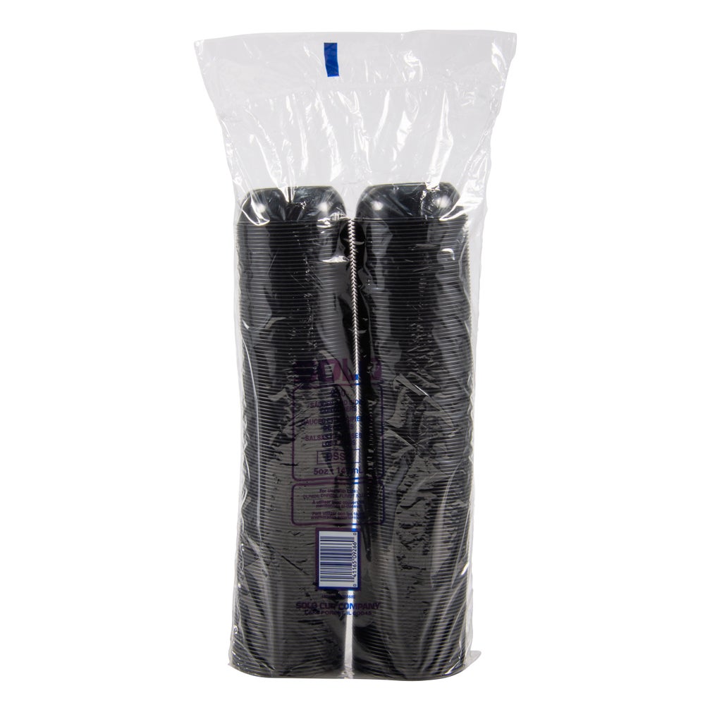 Dart 5.5 Ounce Plastic Sauce & Side Containers, Black, Wide-Mouth, Polystyrene, 250 Ct Bag, 10/Case