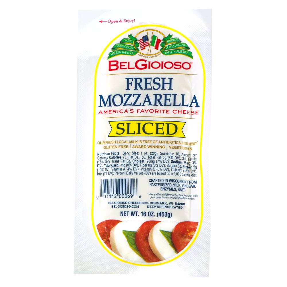 BelGioioso Fresh Mozzarella Cheese, Sliced Log, 16 Count, 1 Lb Each, 8/Case