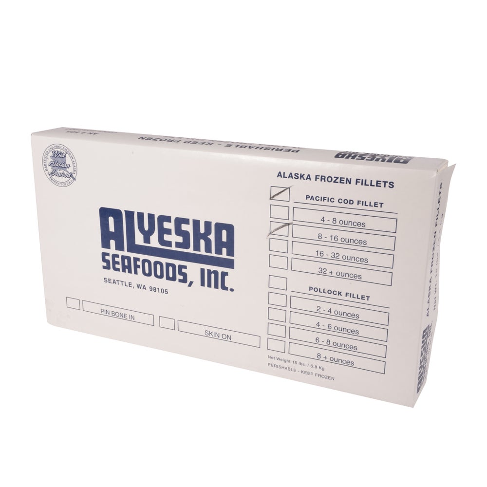 Packer Label North Pacific Alaskan Cod Fillets, Wild-Caught, Boneless Skinless, 8-16 Ounce, Raw, IQF Once-Frozen Shatter-Pack, 15 Lb Box, 3/Case