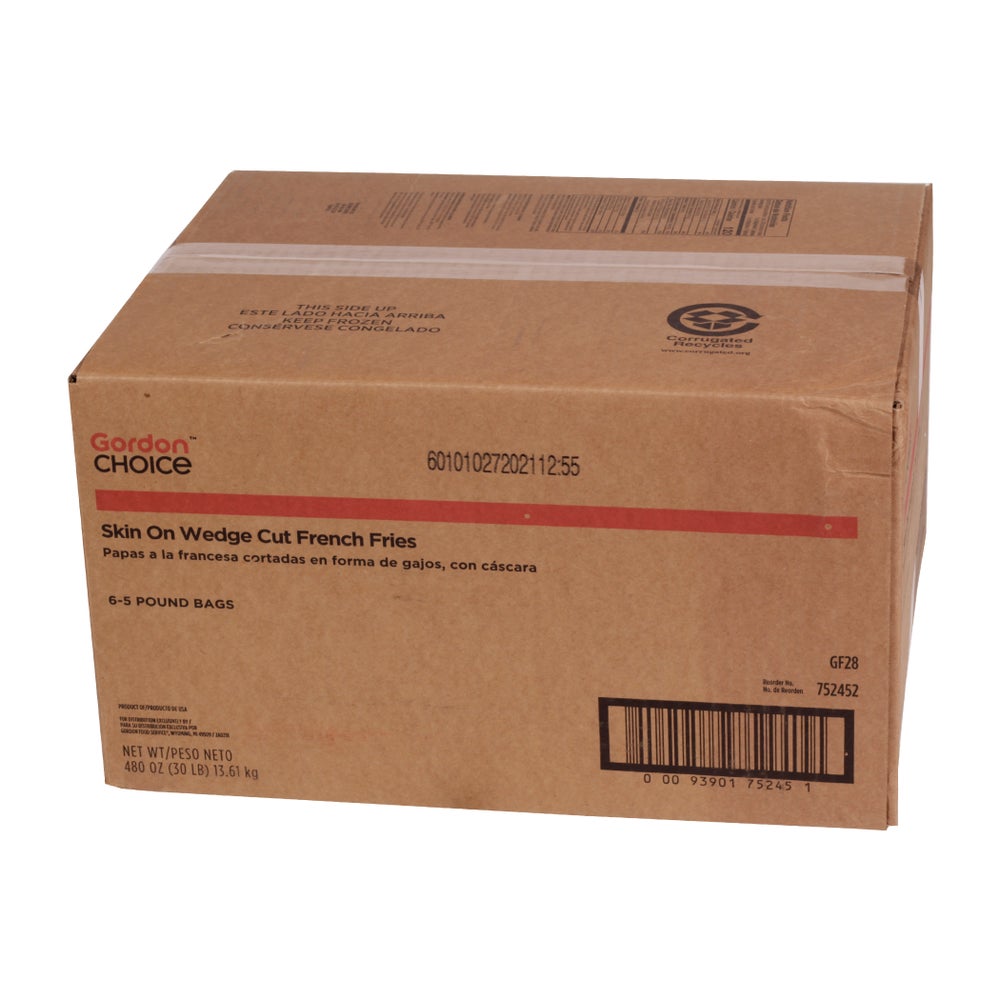 Gordon Choice Long Fancy Wedge Cut French Fries, Skin-On, Frozen, 5 Lb Package, 6/Case