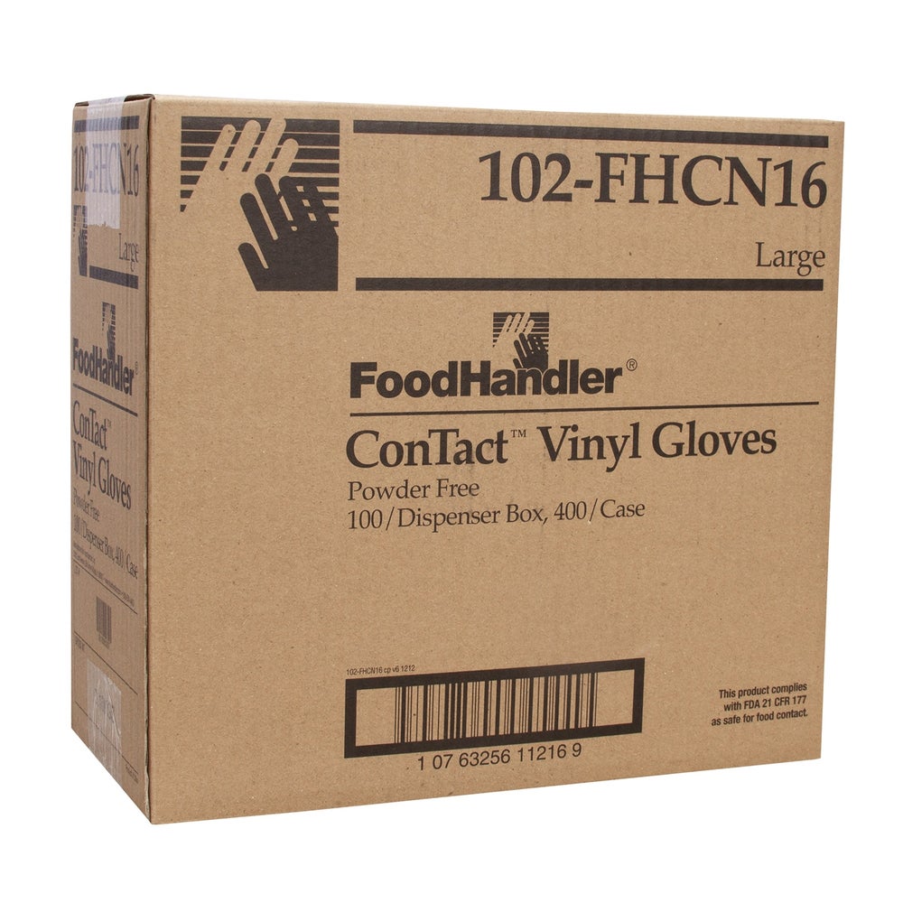 FoodHandler Contact Large Powder-Free Vinyl Gloves, Clear, 100 Ct Box, 4/Case