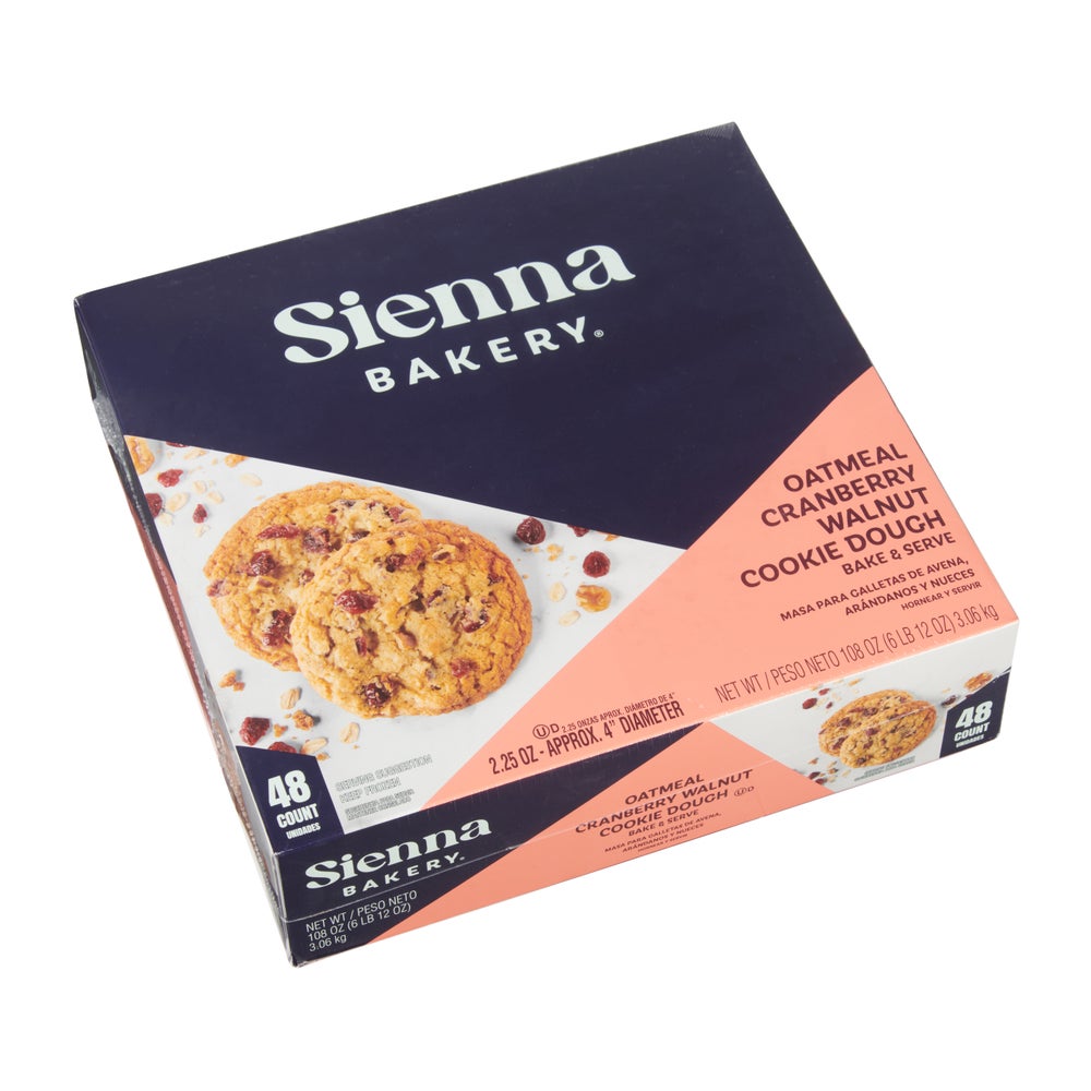 Sienna Bakery Oatmeal Cranberry Walnut Cookie Dough, Frozen, 2.25 Ounce, 48 Ct Box, 4/Case