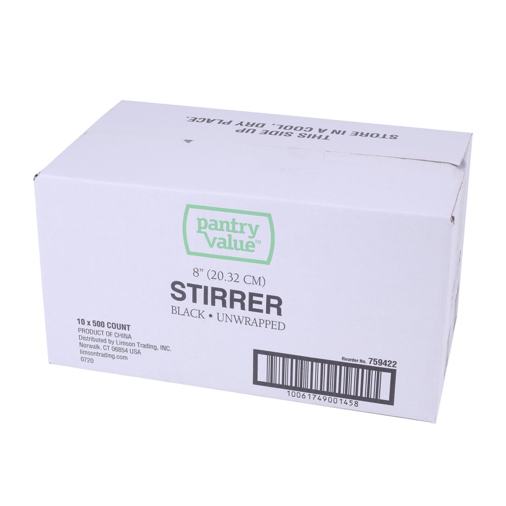 Pantry Value 7.5 Inch Plastic Sipper Hi-Ball Stirrers, Black, Polypropylene, 500 Ct Package, 10/Case