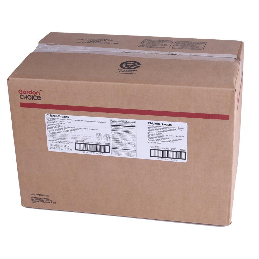 Gordon Choice Boneless Skinless Chicken Breast Fillets, 5 Ounce, Raw, Individually Frozen Ice Glazed, 5 Lb Bag, 3/Case
